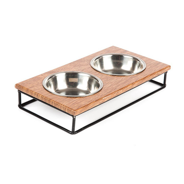 Échafaudage en fer Match avec base en bois Bol en céramique pour chien en céramique