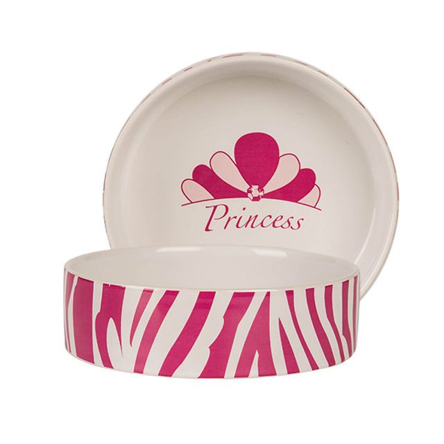 Accueil » Des produits » Appareil pour animaux de compagnie » Bol pour animaux de compagnie » Alimentateur en céramique pour animaux de compagnie en céramique de bol de chien en céramique circulaire de bande rose d'impression