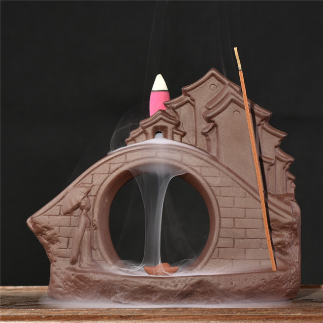 Accueil » Des produits » Brûleur d'encens » Brûleur d'encens à refoulement » Ameublement décorer Statue en céramique Villa de ville petite famille de pont brûleur d'encens à reflux en céramique