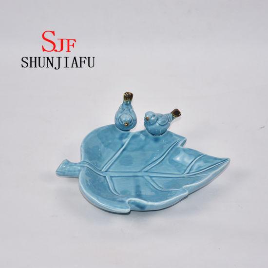 | La description | Assiettes en forme de feuille d'érable en céramique, plat décoratif avec oiseaux |