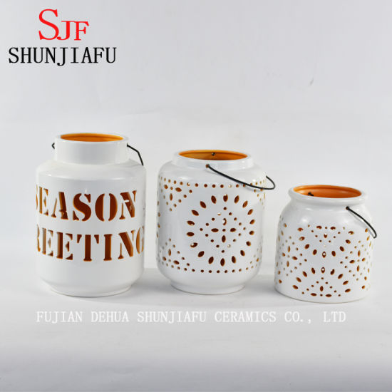 | La description | Assortiment de lanternes en céramique Urban Trends, blanc et jaune |