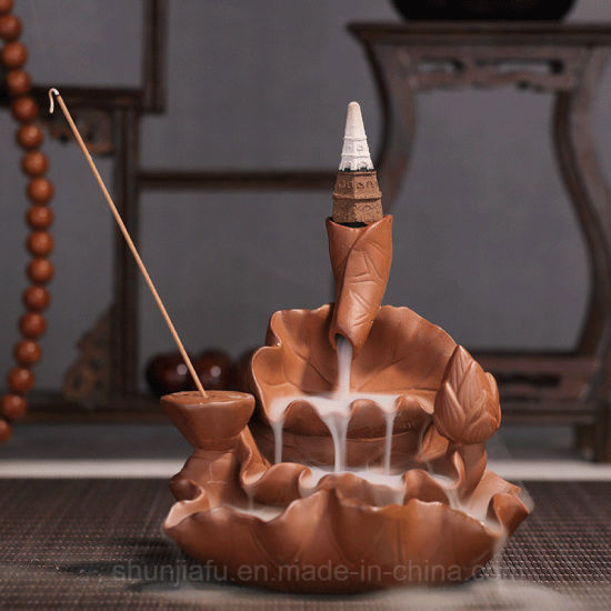 | La description | Base de Lotus en céramique porte-brûleur d'encens encensoir décoration de la maison créative aromathérapie fumée reflux brûleur d'encens / A |