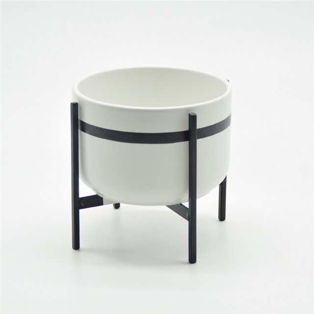 Accueil » Des produits » Pot de fleur » Décoration d'ameublement noir à quatre pattes support en fer pot de fleurs en céramique blanche