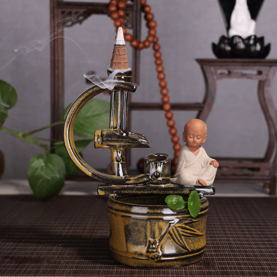| La description | Décoration de la maison d'encensoir de brûleur d'encens de reflux de petits moines en céramique |