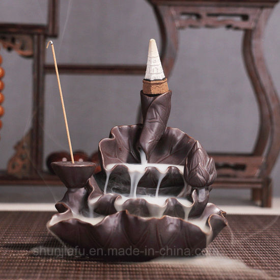 | La description | Base de Lotus en céramique porte-brûleur d'encens encensoir décoration de la maison créative aromathérapie fumée reflux brûleur d'encens / B |