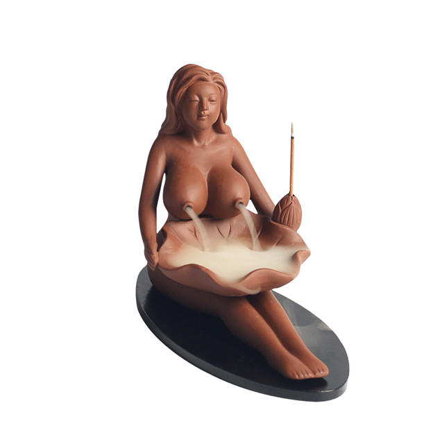 Accueil » Des produits » Brûleur d'encens » Brûleur d'encens à refoulement » Déesse en céramique tenant des plaques brûleur d'encens à reflux en céramique de parfum qui coule