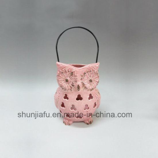 | La description | Photophore en céramique rose hibou. |