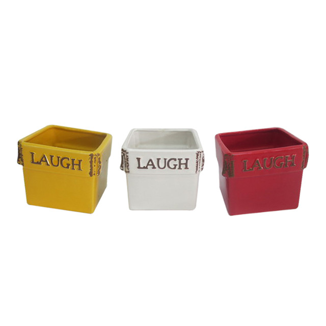 Accueil » Des produits » Pot de fleur » Pots de fleurs carrés en céramique rouge jaune et blanc