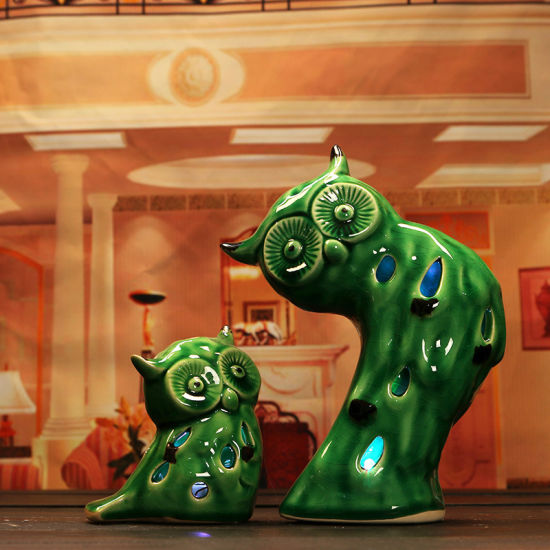 | La description | Hibou décoratif en céramique Shunjiafu, vert avec conception de puits |