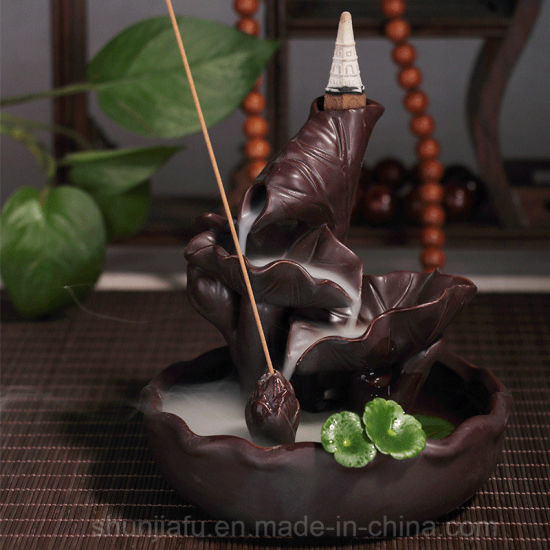 | La description | Support de tour d'encensoir de refoulement de brûleur de cône de fumée d'encens de piscine de Lotus en céramique |
