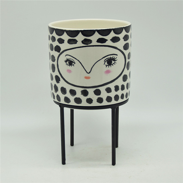 Support en fer noir Support à quatre jambes Diverses images de personnages Pot de fleurs en céramique Pot de fleurs Ventes les plus chaudes Pot de fleurs en céramique blanche