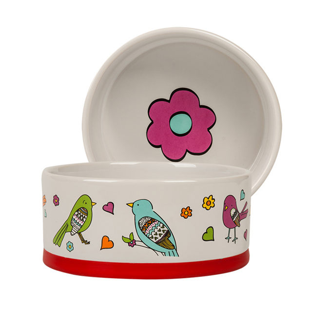 Accueil » Des produits » Appareil pour animaux de compagnie » Bol pour animaux de compagnie » avec Circulaire Imprimé Petite fleur imprimée sur le fond du bol