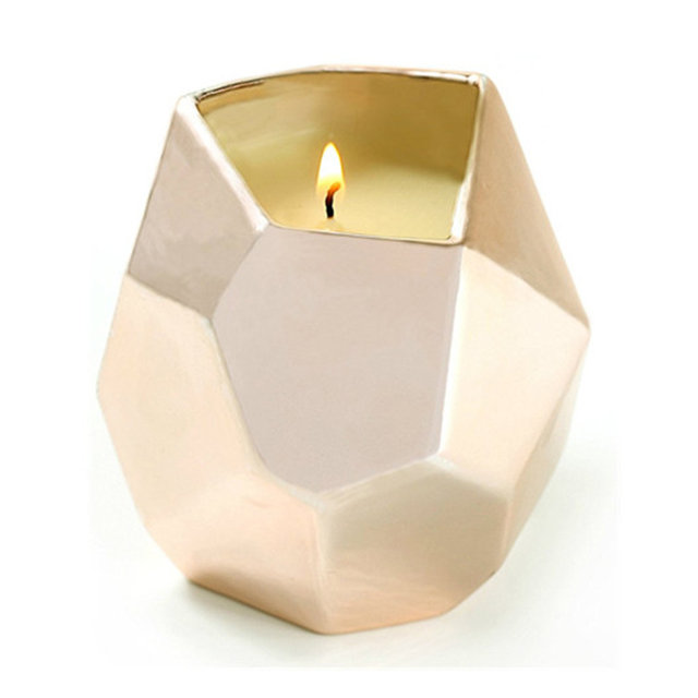 Accueil » Des produits » Bougeoirs » Bougeoir en céramique » avec bougie en céramique losange doré et or rose galvanisé